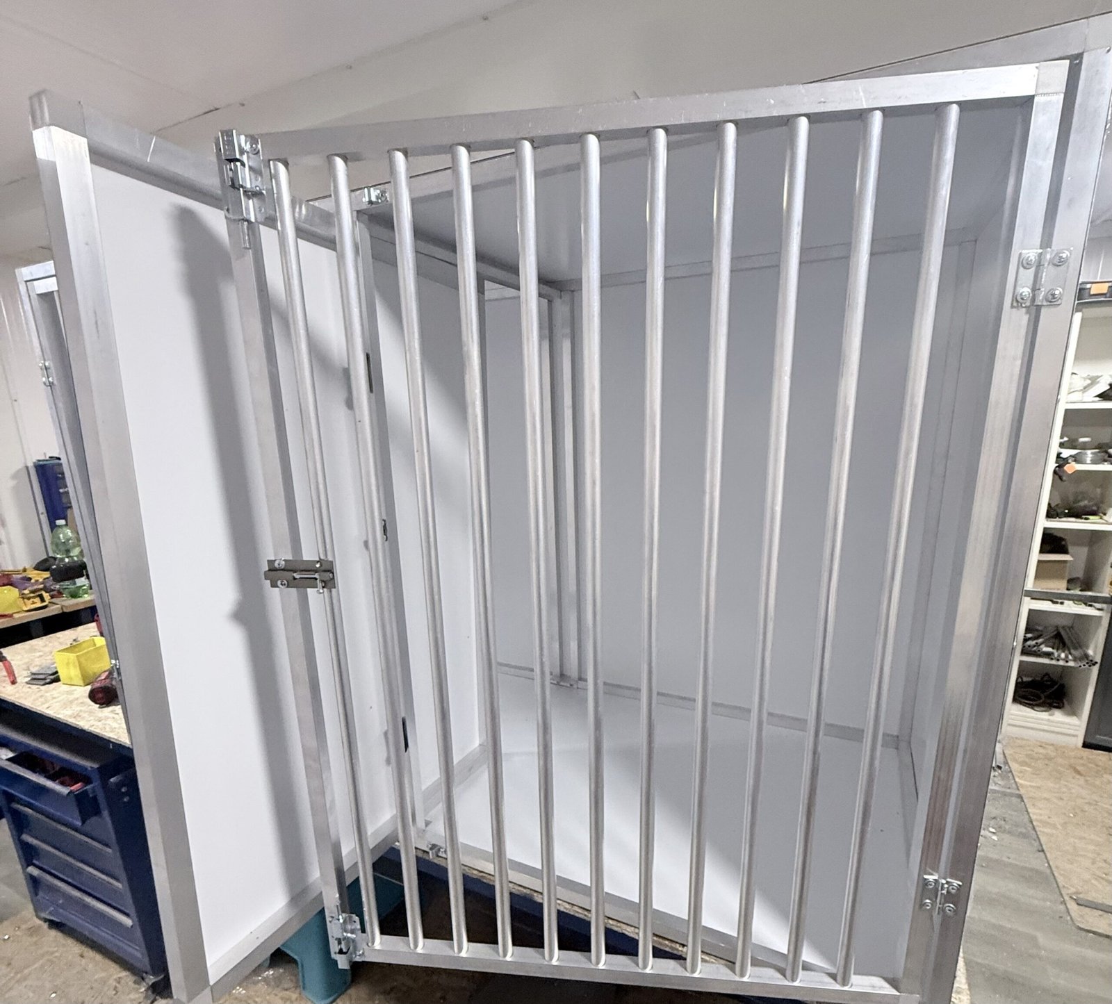 Hliníková klietka/ box je vyrobená z hliníkových joklov 25x25x2mm / 20x20x1,5mm a vyplnená hliníkovými trubkami 16x2mm, čo zabezpečuje stabilnú a pevnú konštrukciu. Využitie klietok a boxov je hlavne v domácom prostredí keď je treba izolovať zvieratko od okolia. Ďalším využitím je v chovných staniciach, veterinárnych ambulanciách, útulkoch a na rôznych vystávách.