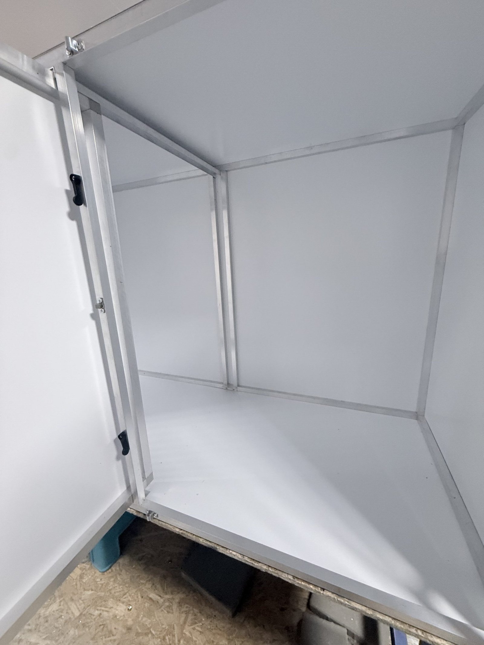 - zadná strana, 2x bok a vrch,spodok vyplnená sendvičovou doskou 3mm v dekore biela
